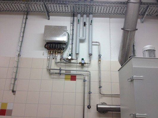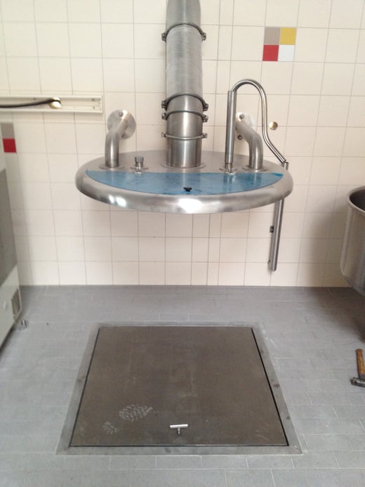 Alle Komponenten der Teigmacherei wie z.B. Wassermisch- und Dosiergerät, Eiswasserbereiter, Sauerteiganlage usw. befinden sich, soweit möglich, im rückwärtigen Bereich (Lager etc.)